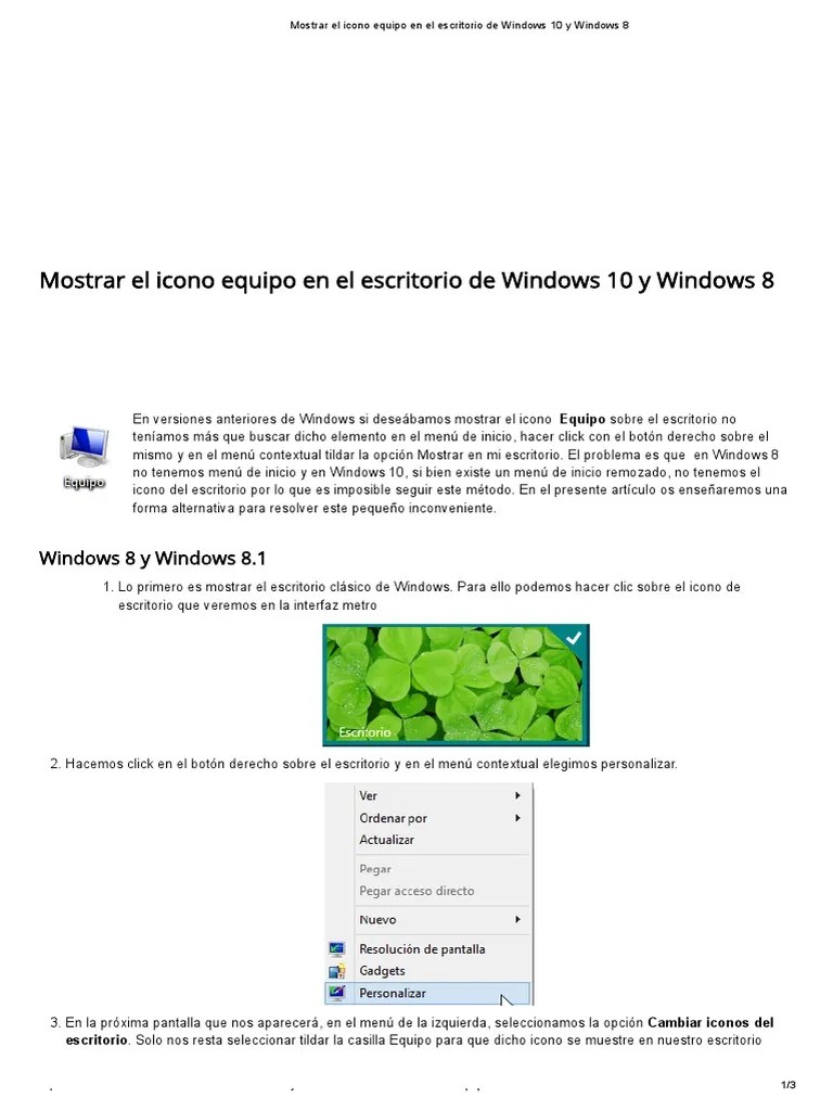 22.09.2017 · como mostrar el icono de equipo o mi pc en el escritorio de windows 10. En este artículo os daremos un pequeños consejos de como mostrar el icono de 'este equipo' en el escritorio. Qué accesos directos podemos fijar en el escritorio Cada vez que formateo un equipo con windows 10, olvido como volver a hacer para que aparezca el icono de.. En este artículo os daremos un pequeños consejos de como mostrar el icono de 'este equipo' en el escritorio.